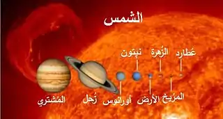 | كوكب | عطارد | الزهرة | الأرض | المريخ | المشتري | زحل | أورانوس | نبتون |