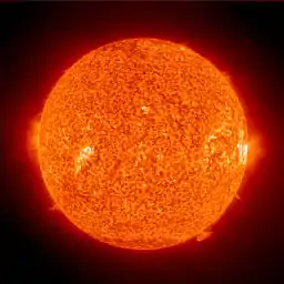 الشمس هي نجم المجموعة الشمسية، وهي العنصر الرئيسي وأكبر كتلة في المجموعة (تبلغ كتلتها حوالي 332,900 من كتلة الأرض).[25] الكثافة والحرارة المنتجة في قلب نواة الشمس كافيان لبقاء التفاعلات النووية،[26] والتي تحرر كميات كبيرة من الطاقة أعظمها على شكل طاقة إشعاعية إلى الفضاء الخارجي مثل الإشعاعات الكهرومغناطيسية. تصل ذروته لما بين أربع مائة وسبع مائة نانومتر. تدعى هذه الحزمة الضوء المرئي.[27]