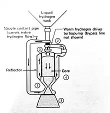 وقد تطورت صواريخ المحرك النووي للمركبات الصاروخية بسرعة إلى حد يمكن تشغيلها لساعات محدودة وقت التشغيل بحجم خزانات الوقود الهيدروجينية السائلة كما قفزوا في كثافة الطاقة وسرعان ما أفسح الصاروخ المحرك النووي للمركبات الصاروخية I الأكبر الطريق لصاروخ المحرك النووي للمركبات الصاروخية II الأصغر في خطط المهمة مع زيادة الكفاءة وزيادة نسب الدفع إلى الوزن.[7][8]