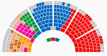 | الكتلة/الأحزاب | المقاعد | % | ||