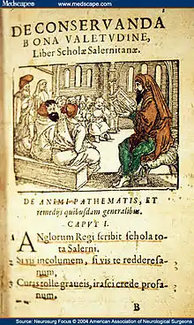 قد شكلت الأسس النظرية لنظام الحالات النفسية للإنسان التي وضعت من قبل أبقراط وجالينوس، ومع ذلك تم تشكيل خلفية علمية من خلال الخبرات المكتسبة من الانشطة اليومية التي قد تساعد المرضى، وعلاوة على ذلك ترجمة نصوص من اللغة العربية، ولقد أضاف ذلك إلى هذه الخبرة ثقافة واسعة في العلاج بالنباتات وفي علم الصيدلة، ودُرست فيها إلى جانب الطب علوم الفلسفة واللاهوت والقانون.
