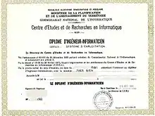المدرسة الوطنية العليا للإعلام الآلي (المعهد الوطني للإعلام الآلي قديماً) بواد السمار شرق العاصمة الجزائرية تخرج مهندسين في علم الحاسوب بعد تكوين مدته خمس سنين، سنتان تحضيريتان وأخرى كجذع مشترك واثنتان للتخصص.[2]