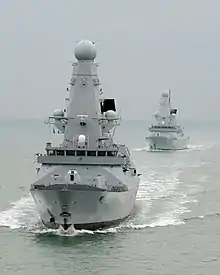 ![]() المدمرة HMS Daring تغادر قاعدة بورتسموث البحرية في 1 مارس 2010 | |
