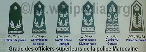 | إطار الإدارة والتدبير | مراقب عام للشرطة | عقيد ملازم للشرطة | |