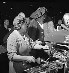 في بداية الحرب في عام 1939 , 17.8٪ من النساء كنَّ عاملات في هذه الصناعات وفي عام 1943 شكلن 38.2٪. مع بداية الحرب كان هناك حاجة ملحة لتوسيع القوة العاملة في البلاد، وكان ينظر للمرأة باعتبارها مصدرا لعمالة المصنع. قبل الحرب كانت النساء في الإنتاج الصناعي حصريا في الجمعيات، الذي كان ينظر إليه على أنه عمل رخيص ومتساهل ولكن خلال الحرب كانت هناك الحاجة للمرأة في المجالات الأخرى في عملية الإنتاج التي كانت تتم سابقا من قبل الرجال مثل مشغلات المخرطة.[45]