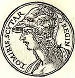 - في وقت متأخر من القرن الرابع:[66] كتسياس يسجل قصة زارينيا، وهي امرأة من الساكا شاركت في المعركة. .[67]