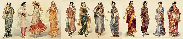 في التقاليد الهندوسية القديمة والقرون الوسطى كان على المرأة تغطية رأسها ووجهها، أما في العصر الحديث فيوجد تحرر إلى حد ما في زي المرأة، وتختلف أشكال الملابس للنساء من أتباع الديانة الهندوسية على حسب العادات والتقاليد المتواجدة في البيئة المحيطة، فنوع وهيئة الملبس للمرأة الهندوسية يختلف باختلاف الاماكن في الهند أو خارج الهند.