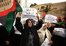 بعد ثورة 17 فبراير في ليبيا، المرأة في ليبيا تمتعت التعرض أكبر في الحياة العامة والحكومية. وقد تم انتخاب ثلاثة وثلاثين امرأة للعمل في المؤتمر الوطني ليبيا العام في أول انتخابات حرة منذ أطاحت الثورة المدعومة من حلف شمال الاطلسي وقتل معمر القذافي، إلا أن "الطرق التي تختار الدولة الليبية الجديدة أن تعتمد أو طمس بقايا لا يزال نظام القذافي الجنسين أن ينظر إليها ".