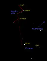 ![]() الصورة تمثل المجموعة النجمية: ذات الكرسي. |