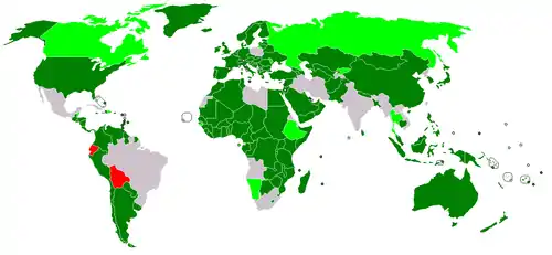 لائحة الدول غير الأعضاء تضم : أندورا وأنغولا والبرازيل وكوبا وجيبوتي وغينيا الاستوائية والهند وإيران والعراق وليبيا والمكسيك وإرتريا وليختنشتاين وجزر المالديف وموناكو والجبل الأسود وميانمار وكوريا الشمالية وبولندا وجنوب أفريقيا وطاجيكستان والفاتيكان وفيتنام.