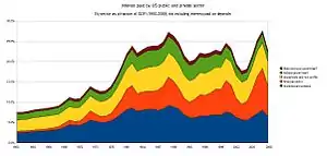 - قائمة الدين العام - قائمة الدين العام للعديد من الدول، كنسبة مئوية من الناتج المحلي الإجمالي.