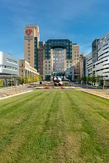 يعد هذا المستشفى مركز كليفلاند الطبي الجامعي، وهو موطن للمراكز السريرية والبحثية ذات المستوى العالمي، بما في ذلك السرطان، [3] طب الأطفال، صحة المرأة، جراحة العظام، العمود الفقري، الأشعة، علم الأورام بالإشعاع، علم الأعصاب لجراحة الأعصاب، أمراض القلب، جراحة القلب والأوعية الدموية، زرع الأعضاء، وعلم الوراثة البشرية . يشتمل المركز على برج ألفريد ونورما ليرنر، وصامويل ماذر بافيليون، ومستشفى ليكسايد، ومستشفى راينبو للأطفال والأطفال، ومستشفى ماكدونالد للنساء، ومركز سيدمان للسرطان، وهانا بافيليون.