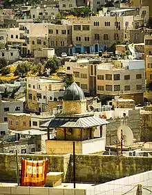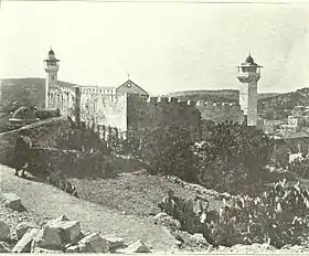 ![]() المسجد الإبراهيمي كما يظهر من زاويته الغربية المسجد الإبراهيمي كما يظهر من زاويته الغربية | |