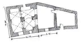 لقد تم المحافظة على الجزئين الوسطي والغربي من البناء القديم، حيث أنهما مسقوفان بعقود مُصلَّبة مع وجود القبّة بالمنتصف، والتي ينتقل فيها الشكل من المربع إلى الدائري عبر استخدام حنية مقرنص بيضويّة على الزوايا الأربع. أما بالنسبة للجزء الشرقي من البناء حيث المدخل، فقد تعرّض للتدمير وتم إعادة تشييده عام 1984، وأُلحق به التوسعة الجديدة ذات السقف الخرساني المُسطّح مع وجود نوافذ حديثة.[1]