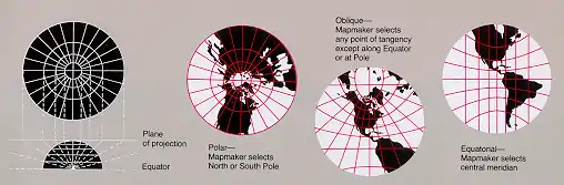 - http://erg.usgs.gov/isb/pubs/MapProjections/projections.html#gnomonic Explanations of projections by الماسح الجيولوجي الأمريكي