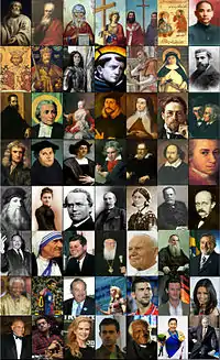 المسيحية تعدّ أكبر دين مُعتنق في البشرية،[9][10] ويبلغ عدد أتباعها 2.4 مليار أيّ حوالي ثلث البشر،[11] كذلك فالمسيحية دين الأغلبية السكانية في 126 بلدًا من أصل 197 بلدًا في العالم؛[12] ويُعرف أتباعها باسم المسيحيين؛ جذر كلمة "مسيحية" يأتي من كلمة المسيح التي تعني "من وقع دهنه" أو "الممسوح بالدّهن المقدّس" ؛ وتُعرف أيضًا لناطقي العربية باسم النَّصرانية، من كلمة الناصرة بلدة المسيح.[مت 2:23][13][14] نشأت المسيحية من جذور وبيئة يهودية فلسطينية، وخلال أقل من قرن بعد المسيح وُجدت جماعات مسيحية في مناطق مختلفة من العالم القديم حتى الهند شرقًا بفضل التبشير، وخلال القرنين التاليين ورغم الاضطهادات الرومانية، غدت المسيحية دين الإمبراطورية؛ وساهم انتشارها ومن ثم اكتسابها الثقافة اليونانية لا بانفصالها عن اليهودية فحسب، بل بتطوير سمتها الحضارية الخاصة.[15][16] المسيحية تصنّف في أربع عائلات كبيرة: الكاثوليكية، الأرثوذكسية المشرقية، الأرثوذكسية الشرقية والبروتستانتية؛[17] وإلى جانب الطوائف، فإنّ للمسيحية إرثًا ثقافيًا دينيًا واسعًا يدعى طقسًا، حيث أن أشهر التصنيفات، وأعرقها في هذا الخصوص، هي المسيحية الشرقية، والمسيحية الغربية.