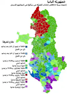 يبدو أن النتائج الأولية لتعداد السكان عام 2011 أعطت نتائج مختلفة على نطاق واسع، حيث رفض 70% من المستجيبين إعلان الإيمان بأي من الأديان المدرجة.[72][73] كما ورفضت الكنيسة الألبانية الأرثوذكسية رسمياً الاعتراف بالنتائج، مدعيَّة أن 24% من إجمالي سكان البلاد يعتنقون العقيدة الأرثوذكسية،[74][75] وأشارت الكنيسة الألبانية الأرثوذكسية أن في تعداد السكان لم يتم حسبان الأقلية اليونانية التي يعتنق أغلبها المذهب الأرثوذكس.[76] وقد تكون نسبة أتباع الكنيسة الأرثوذكسية المُبلغ عنها أقل من النسبة الفعلية بسبب مقاطعة التعداد السكاني، وأيضًا لأن طاقم التعداد فشل في الاتصال بعدد كبير جدًا من سكان الجنوب الذي يُعتبر تقليدياً معقلاً للألبان الأرثوذكس.[77][78][79][80] وأعرب بعض مسؤولي الطائفة المسلمة عن استيائهم من البيانات التي تدعي أن العديد من المسلمين لم يتم احتسابهم وأن عدد أتباعها يبلغ حوالي 70% من السكان الألبان وليس 58%.[81][82] كما شكك مجلس الأساقفة الألباني الكاثوليكي في معطيات التعداد السكاني، واشتكى من عدم الاتصال بالعديد من المؤمنين الكاثوليك.[83]