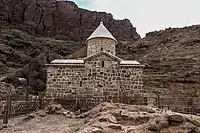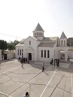 كنيسة الأرمن الأرثوذكس هي أكبر الطوائف المسيحية في إيران، ويتراوح عدد الأرمن الإيرانيين اليوم بين 130-150 ألفًا،[122] في حين تشير تقديرات أخرى أن عدد الأرمن في إيران يصل إلى حوالي 300,000 نسمة،[123] وهم موزعون بشكل متفاوت جغرافيًا على ثلاث أبرشيات هي أصفهان ومُحافظة أذربيجان الشرقيَّة (مركزها تبريز) وطهران والتي تضم نحو 80 ألفاً من الأرمن الأرثوذكس الذين يشكلون الأكثرية الساحقة من المسيحيين في العاصمة، ويبلغ عدد الأرمن البروتستانت نحو 350 شخصًا والأرمن الكاثوليك 50 شخصًا. تناقص عدد هؤلاء مع الأعوام فهاجر قسم منهم لأسباب متعددة شبيهة بتلك السائدة في لبنان وسوريا والأردن وفلسطين ومصر. حوالي نصف الأرمن في إيران يعيشون في مدينة طهران خصوصاً في أحياء نارماك ومجيدية وندرشة،[124] ويعيش حوالي الرُبع في حي جلفا في مدينة أصفهان، ويتركز الربع الآخر في شمال غرب إيران أو أذربيجان الإيرانية خصوصاً في مدينة تبريز وما حولها.[8][125] خلال بداية القرن العشرين هجر الأرمن قراهم في أذربيجان الإيرانية ووسط إيران إلى المدن الكبرى مثل طهران وأصفهان وتبريز والمهجر، ولا تزال قرية زرنة أرمنية بالكامل، في حين لا تزال بعض العائلات الأرمنية تسكن في قرى مثل خويغان عليا وغرغن ونماغرد وبرف أنبار وغيرها. اعترفت الجالية الأرمنية الإيرانية تقليديًا بسلطة الكرسي الرسولي أو الكاثوليكوس في إيتشمازين في أرمينيا حتى عقد 1950، عندما تم استبداله بالكاثوليكوس في أنطلياس في لبنان لأسباب سياسية. وأدى ذلك إلى انقسام في المجتمع الأرمني الإيراني، حيث استمر عدد كبير في إتباع الكاثوليكوس في إيتشمازين، والذي رفض التخلي عن سلطته الكنسيَّة على المجتمع الإرمني الإيراني.[126]