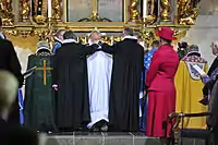 | الكنيسة اللوثرية أنشئت لإدارة الدولة. تُدار شؤون الكنيسة في الحكومة من قبل وزارة الحكومة المركزية، ورجال الدين وموظفي الحكومة. يندرج تسجيل المواليد والوفيات والزواج تحت مسؤوليات الوزارة للشؤون الكنيسة، ويعد القس اللوثري المحلي عمومًا أيضًا مسجل رسمي.[43] |
