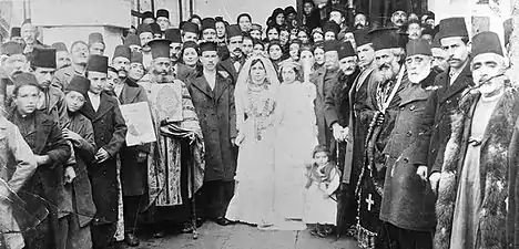 كان المجتمع الأرمني يتكون من ثلاثة طوائف دينية وهي الأرمن الكاثوليك، والأرمن البروتستانت، والرسوليين الأرمن، وهي الكنيسة التي يتبعها الأغلبية الساحقة من الأرمن. في ظل نظام الملة، سُمح للجماعة الأرمنية بحكم نفسها تحت نظام الحكم الديني الخاص بها مع تدخل قليل نسبياً من الحكومة العثمانية. عاش معظم الأرمن - ما يقرب من 70% - في ظروف فقيرة وخطيرة في الريف، بإستثناء طبقة غنية من الأرمن والتي اتخذت من القسطنطينية مقراً لها، وضمت النخبة الأرمنية نخبة اجتماعية كان من بين أعضاءها آل دوزيان (مدراء وزارة المالية)، وآل باليان (كبار المهندسين المعماريين) وآل داديان (المشرفين على مطاحن البارود والمصانع الصناعية).[105][106] خلال القرن التاسع عشر تحسنت أوضاع الملّة الأرمنيّة الأرثوذكسيّة لتُصبح أكثر طوائف الدولة العثمانية تنظيمًا وثراءً وتعليمًا، وعاشت النخبة من الأرمن في عاصمة الإمبراطورية العثمانية حيث تميزوا بالغناء الفاحش وعلى وجه الخصوص العائلات الكبيرة المعروفة آنذاك كعائلة دوزيان وباليان ودادايان حيث كان لهم نفوذ اقتصادي كبير في الدولة.[107] إلى جانب الاستفادة من تطور بنية المدراس الأرمنية التابعة للكنيسة عمل الأرمن في التجارة والمهن الحرة مما أدى إلى تحسن أوضاعهم الاجتماعية، وظهر أشخاص شغلوا مناصب هامة مثل المُحسن ورجل الأعمال كالوست كولبنكيان الذي لعب دورًا رئيسيًا في جعل احتياطي النفط في الشرق الأوسط متاحًا للتنمية الغربية.