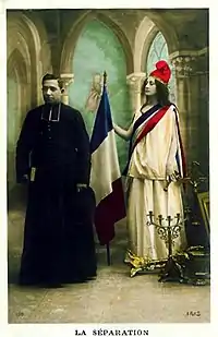 في أوائل القرن العشرين كانت فرنسا أكبر بلد وأمَّة كاثوليكية في العالم، ووفقًا لإحصائية تعود إلى عام 1901 شكّل الكاثوليك نسبة 98.4% أي حوالي 40.5 مليون نسمة من سكان فرنسا.[77] كما وكانت مدينة باريس في أوائل القرن العشرين أكبر مدينة كاثوليكيَّة في العالم.[78] كانت العديد من قوانين حكومة الجمهورية الفرنسية الثالثة معادية للإكليروس، وجدت المؤسسة الفرنسية نفسها منقسمة فالتقليديون داخلها شددوا على ضرورة تمسك الجمهورية بالمبادئ العلمانية الآن تماما كما كان في الماضي بوجه الملوك الذي حكموا بزعم الحق الإلهي في القرون السالفة. أبقت القوانين الفرنسية إقليما الألزاس واللورين اللذان كانا ضمن ألمانيا حينما تم فصل الكنيسة عن الدولة في عام 1905، بنظام الكونكوردا الذي يسمح لرجال الدين بتلقي رواتب من الحكومة، وتمنح أيضًا إقليما الألزاس واللورين صفة رسمية إلى أربعة من الأديان في هذه المنطقة وهي: اليهودية، والكنيسة الرومانية الكاثوليكية، واللوثرية والكالفينية.