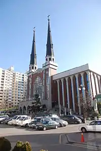 الكنيسة الكاثوليكية الكورية هي جزء من الكنيسة الكاثوليكية العالمية في ظل القيادة الروحية للبابا في روما ومجلس الأساقفة الكوري. وفقًا لتعداد السكان عام 2015 حوالي 7.9% من سكان كوريا الجنوبية من الكاثوليك أي حوالي 3.8 مليون شخص.[34] وشهدت الكنيسة الكاثوليكية في كوريا الجنوبية نمواً ملحوظاً في السنوات الأخيرة،[43][44] حيث زادت نسبة أعضائها بنسبة 7.9% من السكان إلى 11%، وفي نهاية عام 2017 كان هناك 5.8 مليون كاثوليكي في كوريا الجنوبية أي 11.0% من السكان.[43] وفي عام 2017، نمت الكنيسة بنسبة 1.3%، مع أكثر من 75,000 متحول للمذهب الكاثوليكي.[43] ويتوزع كاثوليك البلاد على خمسة عشرة أبرشيَّة وثلاثة أسقفيات؛ وتملك الكنيسة الكاثوليكية الكورية حوالي سبعة وعشرين مستشفى، وحوالي خمسة عشرة دار تمرض، وحوالي 220 روضة أطفال، وحوالي 652 مدرسة أحد، وحوالي سبعة مدارس ابتدائية، وحوالي خمسة وستين إعدادية وثانوية، وحوالي عشرة مدارس للتعليم المهني وتسعة جامعات كاثوليكية. ويعتبر مستشفى سانت ماري سيول التابع للجامعة الكاثوليكية أكبر مستشفى في كوريا الجنوبية.[45] في عام 2014، نمت الكنيسة بنسبة 2.2% حيث تحول أكثر من 98,000 كوري للمذهب الكاثوليكي.[46] وتأتي كوريا الجنوبية كثاني أكبر الدول الآسيويَّة التي تضم أكبر أعداد من الكاثوليك بعد الفلبين. وفي عام 2005 ضمت البلاد 1,400 رعية يخدمها حوالي 3,200 كاهن.[47] لم يتم تقسيم التسلسل الكاثوليكي في كوريا قط بين الجنوب والشمال، بنفس الطريقة التي لم ينقسم فيها التسلسل الهرمي الكاثوليكي في ألمانيا بين الشرق والغرب أو في أيرلندا بين الحدود التي تم إنشاؤها بشكل مصطنع. على سبيل المثال، تقع بعض أجزاء إقليمية من أبرشية سيئول في كوريا الشمالية. ومع ذلك، منذ الانقسام السياسي لكوريا في عام 1945، اختلف تطور ونمو الكاثوليكية في الشمال والجنوب.