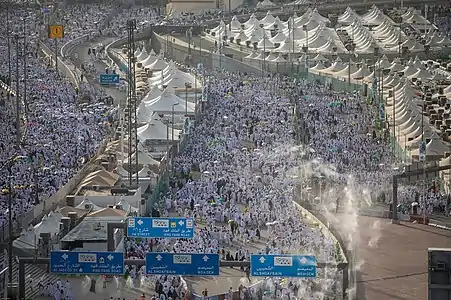 |CitationClass=تم تجاهله (مساعدة); تحقق من التاريخ في:|تاريخ أرشيف=(مساعدة) - "61 ألف بخاخ رذاذ مياه لتلطيف الأجواء على الحجاج في المشاعر المقدسة". aawsat.com. مؤرشف من الأصل في 18 أكتوبر 2017. اطلع عليه بتاريخ 03 أكتوبر 2018. الوسيط
