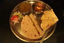 - خبزجاف (شواية هندية)، جووار كي روتي، باجري كي روتي وماكي كي روتي (مدهونة بالزبدة البيضاء)