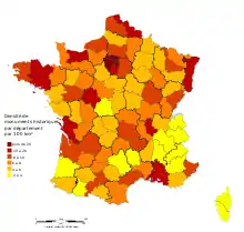 يوجد في فرنسا 44318 معلم تاريخي في عام 2014 وفقا لقاعدة بيانات Merimee، وفي عام 2012 بلغ عدد المعالم التاريخية حوالي 260000.
