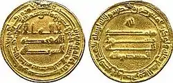 ![]() دينار المعتصم بالله ضرب ببغداد عام 225هـ | |||||||