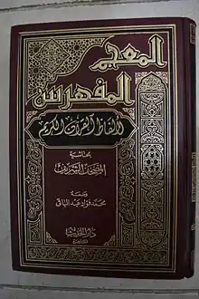 - كتاب معجمي مفهرس فيه الألفاظ الواردة بالقرآن الكريم يرتب موادها أبجديًا وفقًا للتصريف اللغوي لكل لفظ، مع بيان ظهور اللفظ بتصريفاته المختلفة.