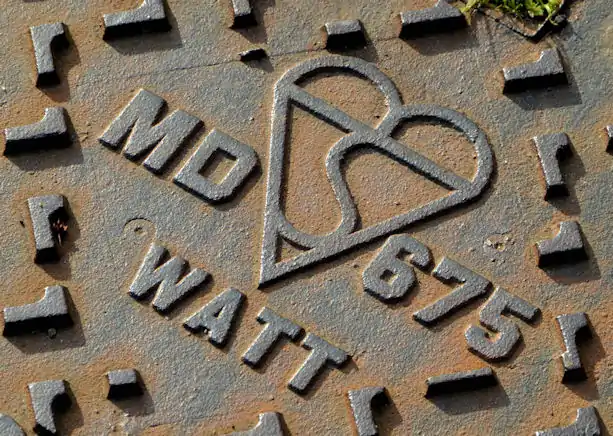 رمز Kitemark كما يظهر على غطاء الوصول في نيوتاوناردز، أيرلندا الشمالية