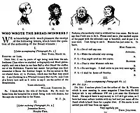 سلطته وإن عدم الدقة في تصوير المشهد المحلى يرجح احتمالية أن تكون الرواية مكتوبة بأيدى أحد سكان كليفلاند ولكنه لم يذكر اسماً صريحاً. إلا إنه في نوفمبر خصصت المجلة عموداً جاء فيه احتمالية أن يكون هاى هو مؤلف الرواية مستندة إلى تشابه بعض العبارات في المُعيلون وكتابه أيام القشتالية ومستندة كذلك إلى أن أحد شخصيات الرواية تنتمى إلى مدينة سالم بولاية إنديانا مسقط رأس هاى نفسه. وقد أدى المزيد من التحليل النصى الذي أجرته عدد من الصحف عام 1884 إلى أن هاى [38] هو المؤلف وكانت الرواية صدرت في شكل كتاب آنذاك. ورداً على لعبة الألغاز تلك فقد جاء رد بعض الصحف ساخراً فقد جاء مثلاً في صحيفة نيوأورليانز الفكاهية قائمة بأسماء كل المؤلفين المحتملين للرواية وأعلنت ان" جميع مؤلفو المُعيلون(كما في الأصل) سيلتقون الصيف القادم بمدينة تشوتوكوا الساحلية". وقد جاء في تعليق أحد الصحفيين[39] إنهم في العدد القادم سيقدمون تعداداً لمن وردت أسمائهم كمؤلفين لهذه الرواية. وقد أدى خطاب حالة الاتحاد للرئيس آرثر إلى إعلان روشستر هيرالد إنه هو مؤلف الرواية "لما ارتآه من اتفاق في الأفكار بين الرئيس وتلك الرواية". وقد أثارت جريدة أخرى بشمالى ولاية نيويورك وهي تايمز تروي حكايات بارسون وييمز عن جورج واشنطن عندما قال" لا نستطيع أن نكذب". " كتبنا المُعيلون(كما جاء في الأصل) بمشاعر حقد قليلة.وإن كان هناك من يشكك في ذلك فلنرينه قدراً من هذا الحقد". وهذا الاعتراف كما ترى صحيفة البافالو من شأنه أن ينهى النقاش في تلك المسألة.