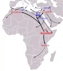 يعرف المغاربة تمازجا ثقافيا لتعدد المناهل بين الجذرين الإفريقي والعربي من خلال الأمازيغية والعربية والأندلسية والصحراوية، ومن حيث الدراسات الأنثروبولوجية للمَعلم الوراثى الهابلوغروبي، فقد تأثر بشدة بالعامل الجغرافي. كانت الصحراء الكبرى في الجنوب والبحر المتوسط في الشمال حواجز هامة في عصور ما قبل التاريخ لتدفق الجينات. فالمغاربة في العموم حسب الدراسات العلمية الأخيرة، ينتمون إلى شعوب شمال إفريقيا، وهو شعب حديث العهد من بين المجموعات الغالبة في شمال إفريقيا، تقدر نشأته وتجمعه بين ال 6000 إلى 15000 سنة، اِشتقَّ عن المجموعة العرقية الليبية، التي اشتقّت بدورها عن المصريين القدماء،[8][9] الذين اشتقّوا بدورهم عن مجموعات القرن الإفريقي الأصلي المُعرََّف بE-M215. (انظر الخريطة إدناه مع التوثيق)