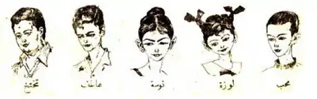 وهم في مثل سنك تقريباً (محب) وأخته (نوسة) و(عاطف) وأخته (لوزة) وقد كان هؤلاء الأربعة يشرعون للقيام بالعمل معاَ، ثم انضم إليهم (توفيق) وهو أكبر منهم قليلاً. وقد أطلقوا عليه لقب (تختخ) حسب الحرف الأول من اسمه الرباعي (توفيق خليل توفيق خربوطلي).[2]