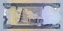 وتظهر صورة المئذنة الملوية مرسومة على عملة فئة 250 دينار عراقي.