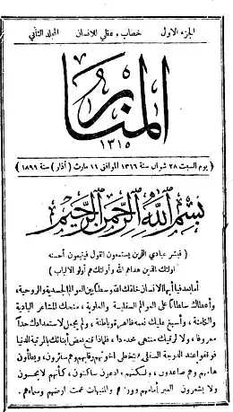 مجلة المنار[1] هي مجلة إسلامية تهدف إلى الإصلاح الديني والاجتماعي للأمة، أسسها الشيخ محمد رشيد رضا وصدر العدد الأول منها في (22 من شوال 1315 هـ = من مارس 1898م)، وحرص الشيخ محمد رشيد رضا على تأكيد أن هدفه من المنار هو الإصلاح الديني والاجتماعي للأمة، وبيان أن الإسلام يتفق مع العقل والعلم ومصالح البشر، وإبطال الشبهات الواردة على الإسلام، وتفنيد ما يعزى إليه من الخرافات.