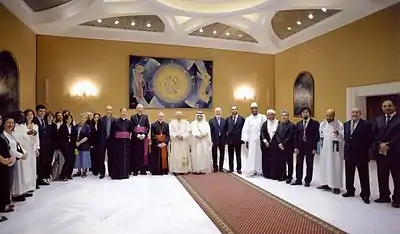 أعضاء المنتدى الإسلامي العالمي للحوار ، وأعضاء المجلس البابوي للحوار بين الأديان - (لجنة الإتصال الإسلامي الكاثوليكي) - مع البابا بنديكتوس السادس عشر.