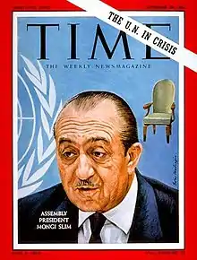 المنجي سليم على غلاف عدد 26 سبتمبر 1961 من مجلة تايم أثناء ترأسه للجمعية العامة للأمم المتحدة