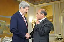 طالب في 26 سبتمبر 2013 أثناء كلمته في الدورة 68 للجمعية العامة للأمم المتحدة بنيويورك السلطات المصرية بإطلاق سراح الرئيس المنتخب محمد مرسي الذي إنقلب عليه الجيش في 3 يوليو 2013.[83]