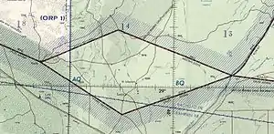 وقد اعتبر المكتب الجغرافي للولايات المتحدة المنطقة أنها ذات حدود تقريبية وغير تفصيلية بدقة، وأجريت بناء على خط تقديري رسم من مركز الحدود بالخرائط الرسمية بشكل تقريبي.