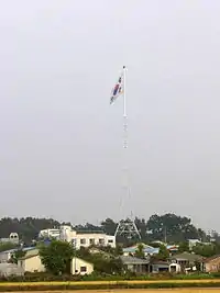 في الثمانينيات، بنت الحكومة الكورية الجنوبية سارية العلم التيالتي يبلغ طولها 98.4 متر (323 قدمًا) في دايسيونج-دونغ، التي ترفع العلم الكوري الجنوبي الذي يزن 130 كيلوغرامًا (287 رطلاً). في ما وصفه البعض بـ "حرب سارية العلم" ، ردت حكومة كوريا الشمالية ببناء سارية العلم في بان مون جوم التي يبلغ طولها 160 مترًا (525 قدمًا) في كيجينغ-دونغ، على بعد 1.2 كيلومتر (0.7 ميل) فقط غرب الحدود مع كوريا الجنوبية. انها ترفع علم يبلغ وزنه 270 كيلوغراما (595 رطل) من كوريا الشمالية. اعتبارا من عام 2014 ، سارية العلم بان مون جوم هي رابع أطول سارية في العالم، بعد سارية العلم في جدة، المملكة العربية السعودية ، التي يبلغ طولها 170 م (558 قدم) ، سارية دوشانبي في دوشانبي، طاجيكستان ، وطولها 165 م (541 قدم) و سارية في ساحة العلم الوطني في باكو، أذربيجان، والتي هي 162 م (531 قدم).