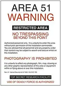وكان لدرجة السرية الشديدة التي تحيط بالقاعدة ووجودها على النحو الذي تعترف به حكومة الولايات المتحدة على نحو هزيل، مما جعل مواضيع أخرى لقصص نظريات المؤامرة تتداول وتستمر كعنصر محوري لشيء طائر مجهول (UFO) الفولكلور.[6]
