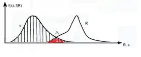 حيث هو احتمال الفشل، هي دالة التوزيع التراكمي للمقاومة (R)، و هي كثافة الاحتمال للحمل (S).