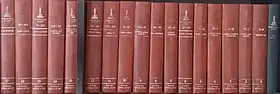 لكن المشروع استغرق ثلاثين عاما، وانتهى إصدار آخر أجزاءه في عام 1980 بعد ربع قرن من التاريخ المفترض. وحين انتهت الموسوعة كانت تضم 32 جزءا. وخلال مرحلة الكتابة صدر ملحق أول بعد الجزء السادس عشر، وصدر ملحق ثاني بعد الجزء الثاني والثلاثين.