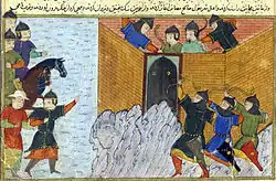بعد وفاة الخليفة المتوكل تمكن الخارجي مصاور من الاستيلاء على المدينة وجعلها جزءا من إمارته. وكرد على ذلك عين المعتضد بالله أحد قادته حاكما على المدينة فأرسل هذا الأخير جيشا قوامه 20,000 تمكن من احتلال المدينة. قام أهالي المدينة بطرد الحاكم العباسي سنة 892 م. فطلب هذا المعونة من بني شيبان. بعد انتصار الأهالي في البداية بقيادة حمدان بن حمدون، تمكن الشيبانيون من السيطرة على المدينة.[36] تمكن حمدان، جد الحمدانيين، الاستقلال بالمدينة سنة 895. غير أنه سرعان ما فر لدى وصول جيش الخليفة العباسي، وأسر لاحقا في حين سلم ابنه حسين المدينة.