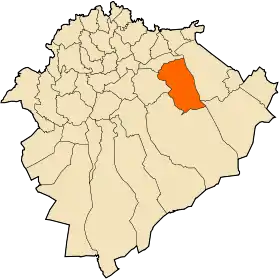 يحدها شمالا بلديتي عين دزاريت وسي عبد الغاني، وجنوبا بلديتي زمالة الأمير عبدالقادر وقصر الشلالة، وشرقا بلدية الرشايقة، وغربا بلدية الفايجة.