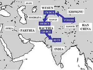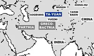 The Dayuan (in فرغانة) was one of the three advanced civilizations of آسيا الوسطى around 130 BCE, together with بارثية and مملكة إغريقية بخترية, according to the Chinese historical work كتاب هان.
