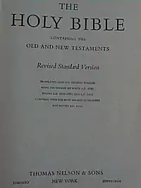 | Copyright | 1946, 1952, 1971 (the Apocrypha is copyrighted 1957, 1977) by the Division of Christian Education of the المجلس الوطني الأمريكي لكنائس المسيح |