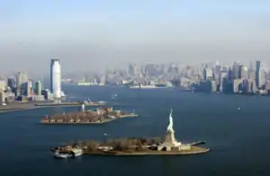 تمثال الحرية هو رمز عالمي مشهور للحرية، قدمته فرنسا عام 1886 للولايات المتحدة احتفالًا بالصداقة.[12] :176 [13] :222–223 كانت جزيرة إليس القريبة المحطة الأولى لملايين المهاجرين إلى الولايات المتحدة في أواخر القرن التاسع عشر وأوائل القرن العشرين.[14] يُتذكر النصب التذكاري الوطني هذه الفترة من الهجرة الجماعية إلى الولايات المتحدة.[15]